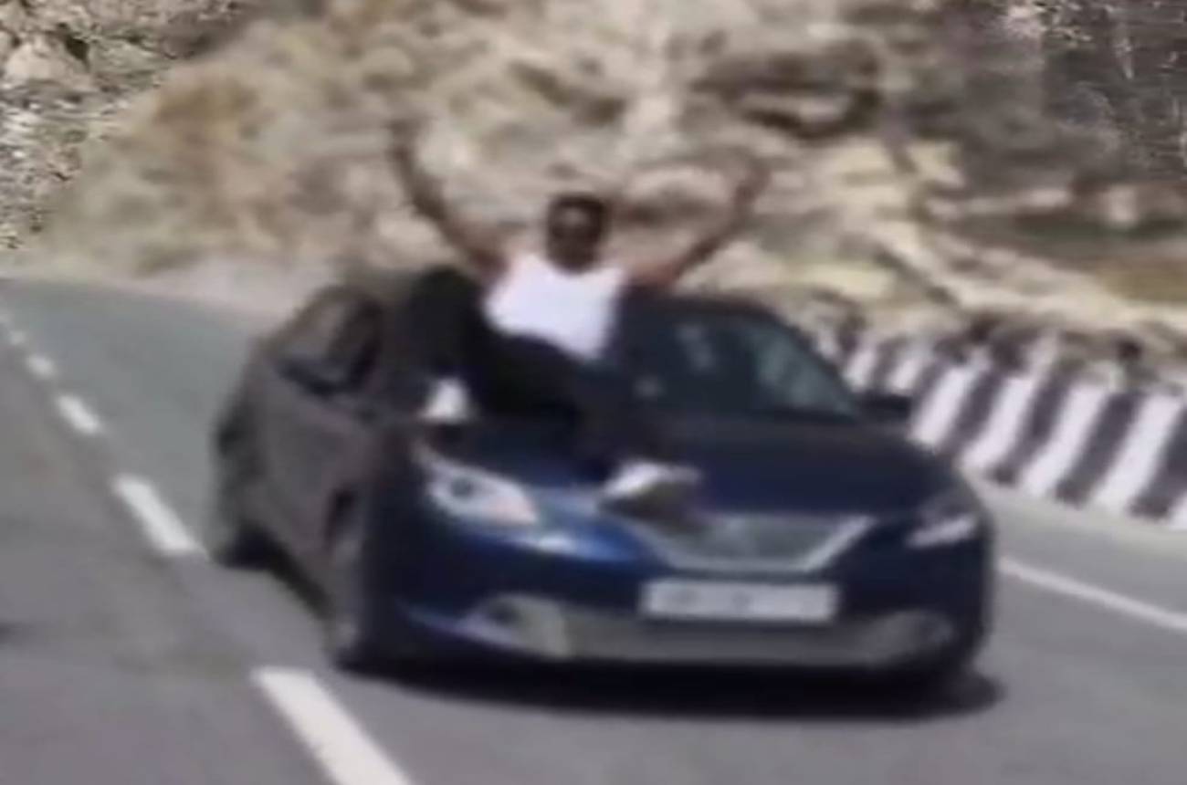 चलती कार पर स्टंटबाजी...चालान हुआ