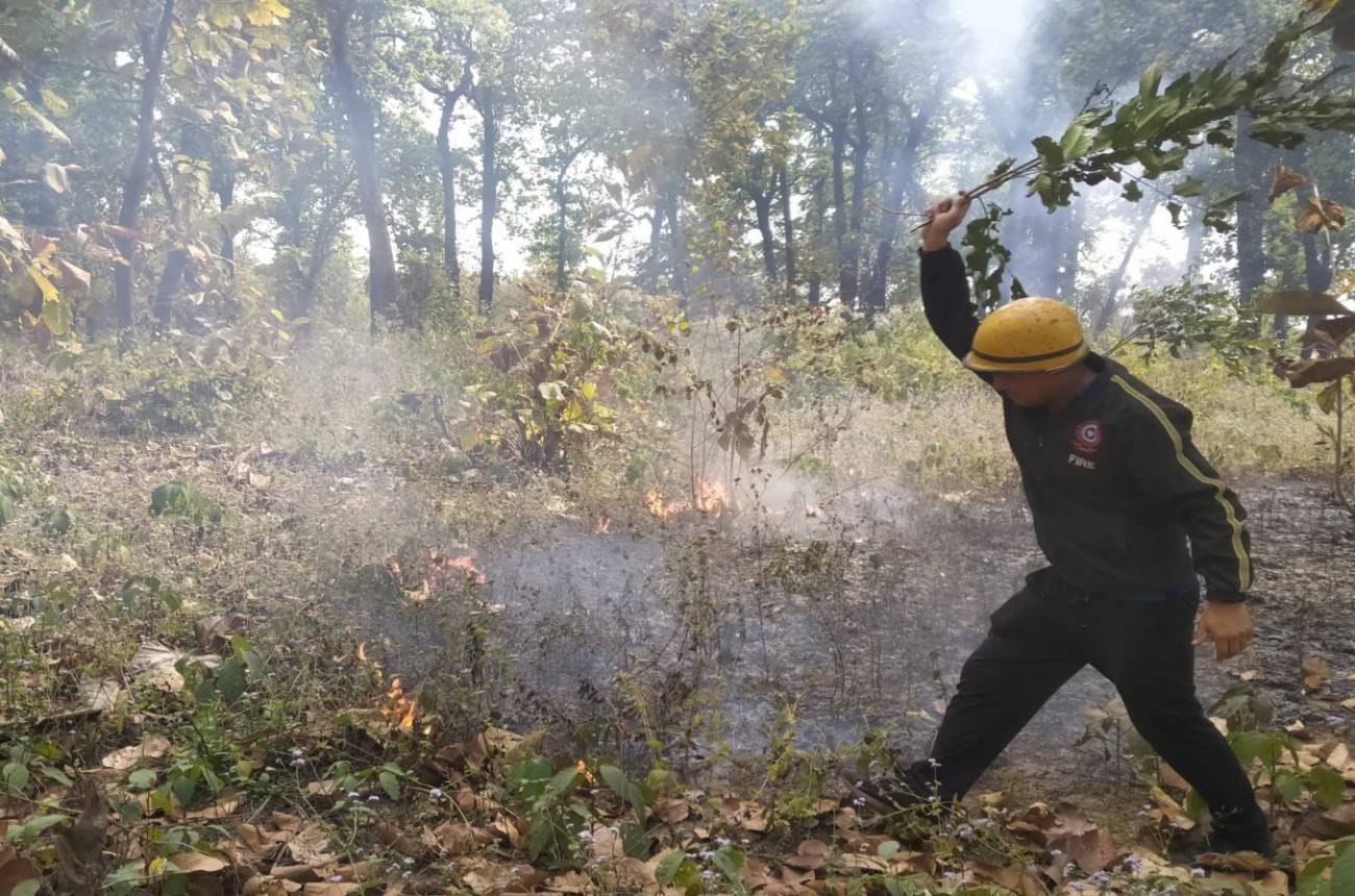 जंगल में लगी आग...फायरब्रिगेड ने काबू किया
