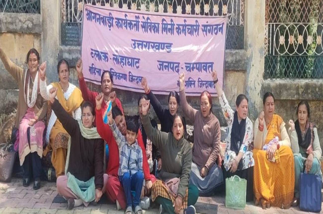 छुट्टी में भी धरने पर आंगनवाड़ी वर्कर्स