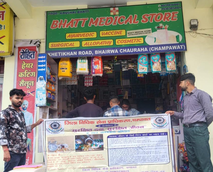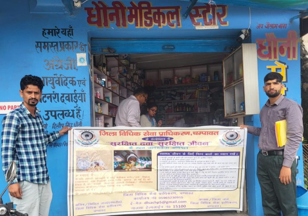 जिला विधिक सेवा प्राधिकरण के सचिव भवदीप रावते के मार्गदर्शन में औषधि नियंत्रण विभाग और विधिक सेवा प्राधिकरण की टीम ने ‘सुरक्षित दवा, सुरक्षित जीवन’ अभियान के अंतर्गत आज 6 अक्टूबर को चंपावत के कई मेडिकल प्रतिष्ठानों का औचक निरीक्षण किया। निरीक्षण के दौरान फर्म स्वामियों को औषधियों के उचित भंडारण, एक्सपायरी दवाओं को अलग रखने और उनके सही निस्तारण के संबंध में निर्देश दिए गए।