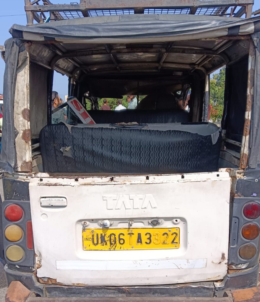 सितारगंज-टनकपुर राष्ट्रीय राजमार्ग पर चंदनी के पास मैजिक वाहन डिवाइडर से टकरा सड़क पर पलटा