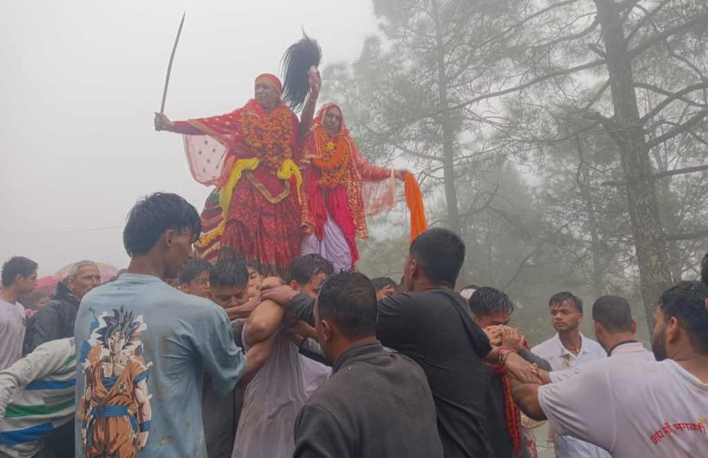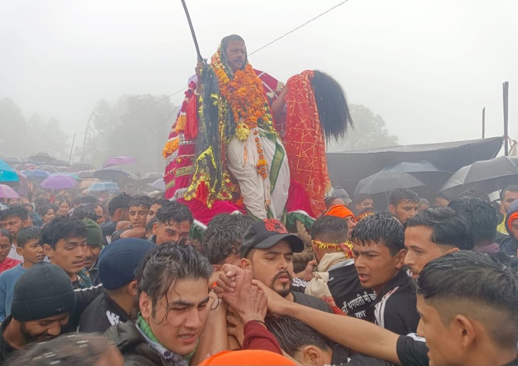 चंपावत/बाराकोट। बाराकोट के लड़ीधूरा महोत्सव के दौरान आज 7 अक्टूबर को बारिश के बीच काकड़ और बाराकोट गांव से देवी रथों को जयकारों के साथ कठिन रास्तों से लड़ीधूरा मंदिर लाया गया। काकड़ से रस्सों के सहारे पहला रथ अपरान्ह 3:20 बजे लड़ीधूरा मंदिर पहुंचा। जिसमें कालिका के रूप में कल्याण सिंह अधिकारी विराजमान थे। जबकि दूसरा रथ बाराकोट से अपरान्ह 3:35 बजे मंदिर पहुंचा। इस रथ में भगवती के रूप में गुड्डी फर्त्याल एवं कालिका के रूप में प्रताप सिंह विराजमान थे। रथों के मंदिर में पहुंचते ही लड़ीधूरा की चोटी मां के जयकारों से गूंज उठी। बारिश के बावजूद भी श्रद्धालुओं में गजब का उत्साह था।