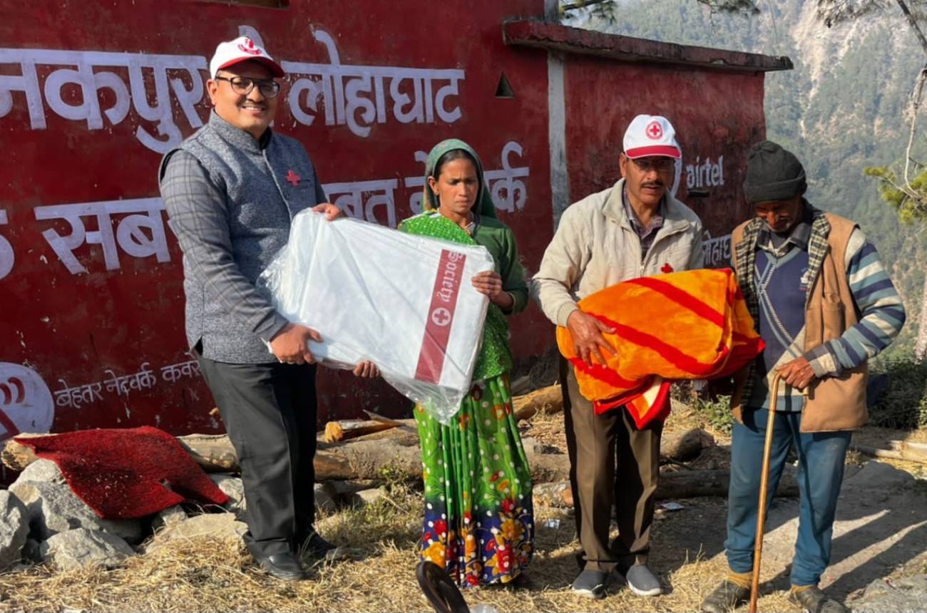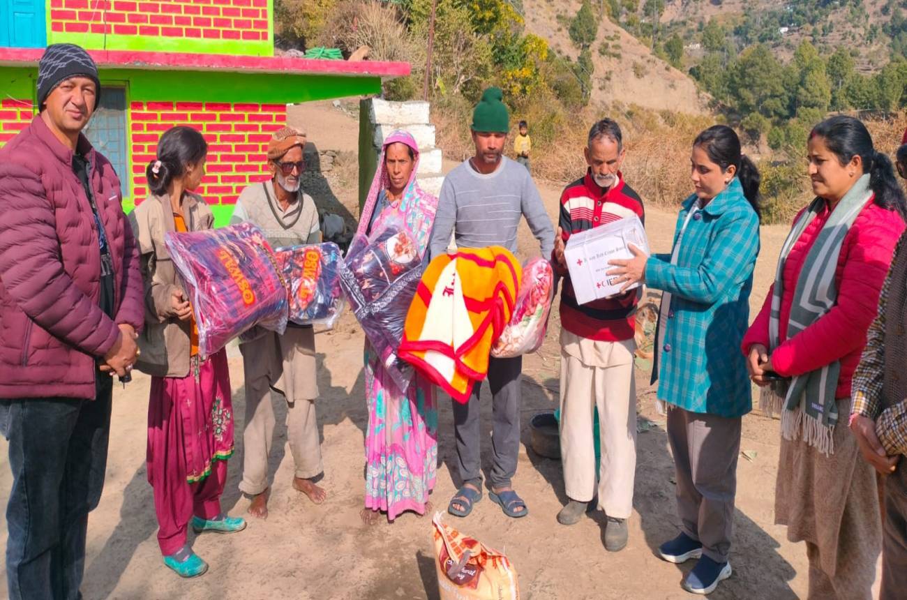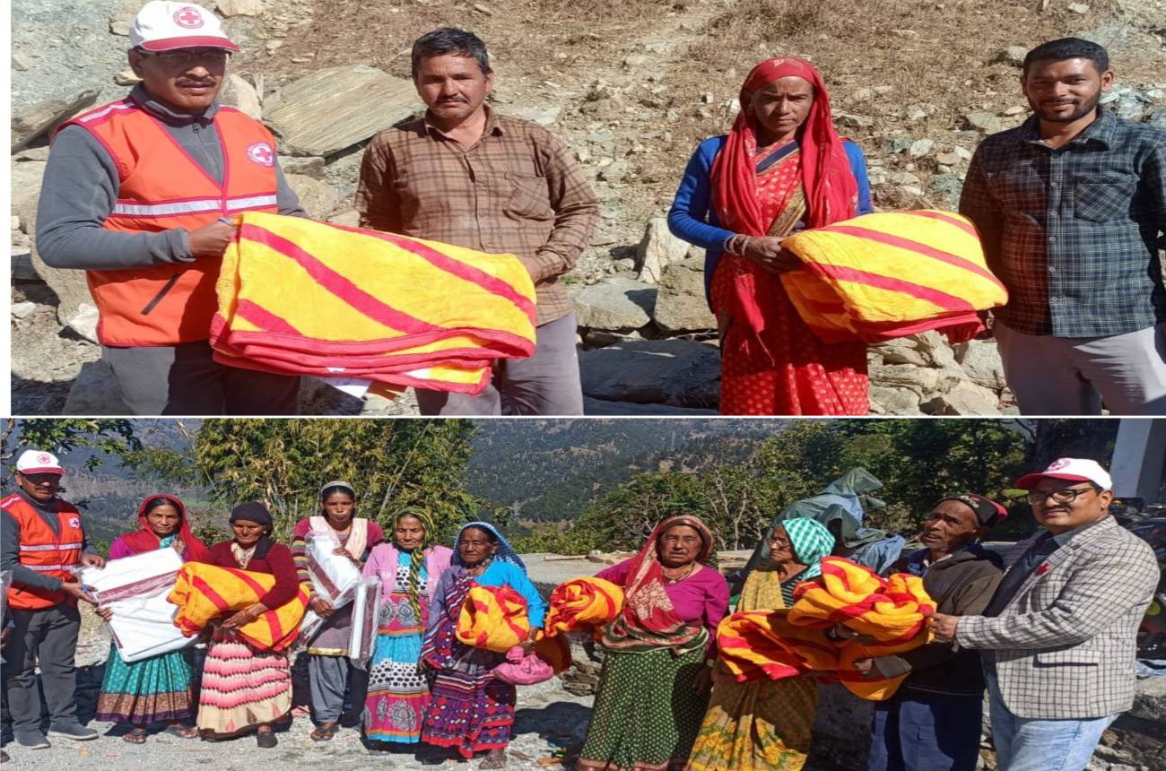 रेडक्रॉस ने जरूरतमंदों को दिए कंबल व तिरपाल