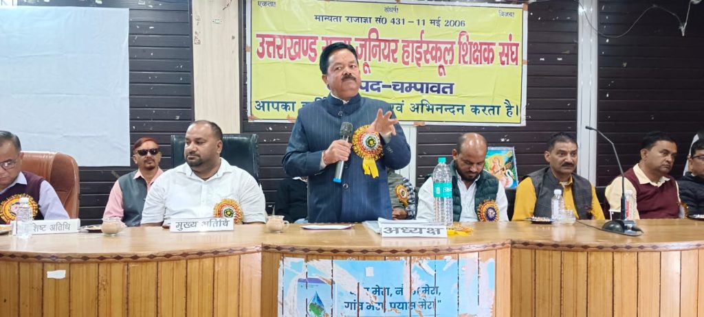 चंपावत/लोहाघाट। लोहाघाट के ब्लॉक सभागार में हुए राजकीय जूनियर हाईस्कूल शिक्षक संघ के त्रिवार्षिक अधिवेशन में शिक्षकों ने शिक्षा के गिरते स्तर में सुधार की जरूरत बताते हुए सुझाव दिए। संगठन के पूर्व जिलाध्यक्ष रमेश सिंह देव की अध्यक्षता में हुए अधिवेशन का शुभारंभ मुख्य अतिथि ब्लॉक प्रमुख महेंद्र सिंह ढेक ने किया। कहा कि ग्रामीण क्षेत्रों के स्कूलों में शिक्षा के स्तर को बेहतर करने के लिए शिक्षकों, अभिभावकों और प्रशासन को सामूहिक रूप से प्रयास करने होंगे। जिला शिक्षा अधिकारी (प्राथमिक) मान सिंह ने जिला स्तर पर चल रही योजनाओं का जिक्र किया और शिक्षकों से गुणवत्ता सुधार के लिए सहयोग की अपील की। अधिवेशन में शामिल जिले के सभी चारों ब्लाकों के शिक्षकों ने विभिन्न सत्रों में चर्चा की। इस मौके पर कक्षा की गुणवत्ता में सुधार, शिक्षकों की कमी, छात्रों की उपस्थिति बढ़ाने के उपाय और नई शिक्षा नीति के क्रियांवचन की चुनौतियाें पर चर्चा हुई। शिक्षक संघ ने 9 सूत्रीय मांगों का ज्ञापन ब्लॉक प्रमुख के माध्यम से मुख्य शिक्षा अधिकारी को भेजा। जगदीश सिंह तड़ागी के संचालन में हुए कार्यक्रम में बागेश्वर के जिलाध्यक्ष रमेश सिंह रावत, प्रांतीय संयुक्त मंत्री दीपेंद्र भट्ट, प्रांतीय सलाहकार महेश जोशी, जीवन ओली, नगेंद्र जोशी, पुष्कर नाथ गोस्वामी, मोहन चंद्र ओली, विनोद कुमार महेश गिरी, रमेश चंद्र जोशी, प्रहलाद सिंह अधिकारी, नरेश चंद्र जोशी आदि मौजूद थे।