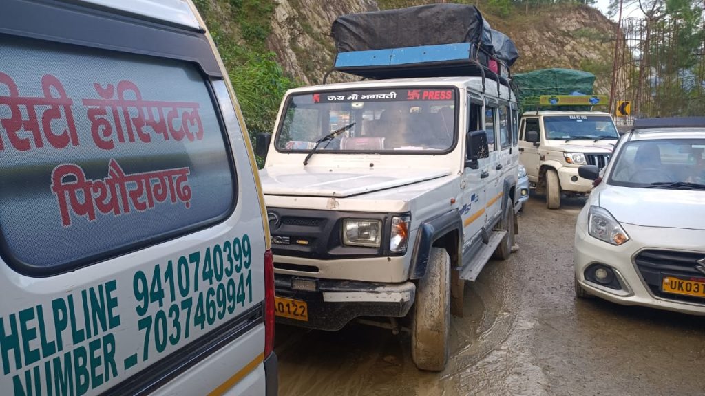 टनकपुर-पिथौरागढ़ राष्ट्रीय राजमार्ग पर स्वांला के डेंजर स्पॉट में अवरोध, एंबुलेंस बाद में एंबुलेंस अमोड़ी-सिप्टी होते हुए आगे बढ़ी, दर्जनों वाहन भी फंसे, मलबा हटाने की कार्रवाई कर रहा विभाग