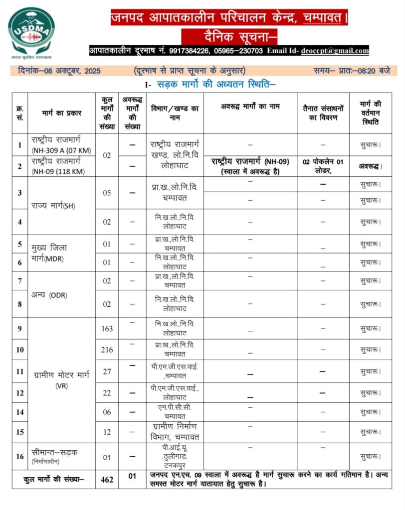 इधर जिला आपदा प्रबंधन अधिकारी देवेंद्र पटवाल का कहना है कि तेज बारिश की वजह से रोड में आए मलबे को हटामा जा रहा है। राष्ट्रीय राजमार्ग खंड ने मलबे को हटाने के लिए दो मशीनें लगाई है। उन्होंने 9 बजे तक रोड को आवाजाही के लिए सुचारू किए जाने की उम्मीद जताई है।