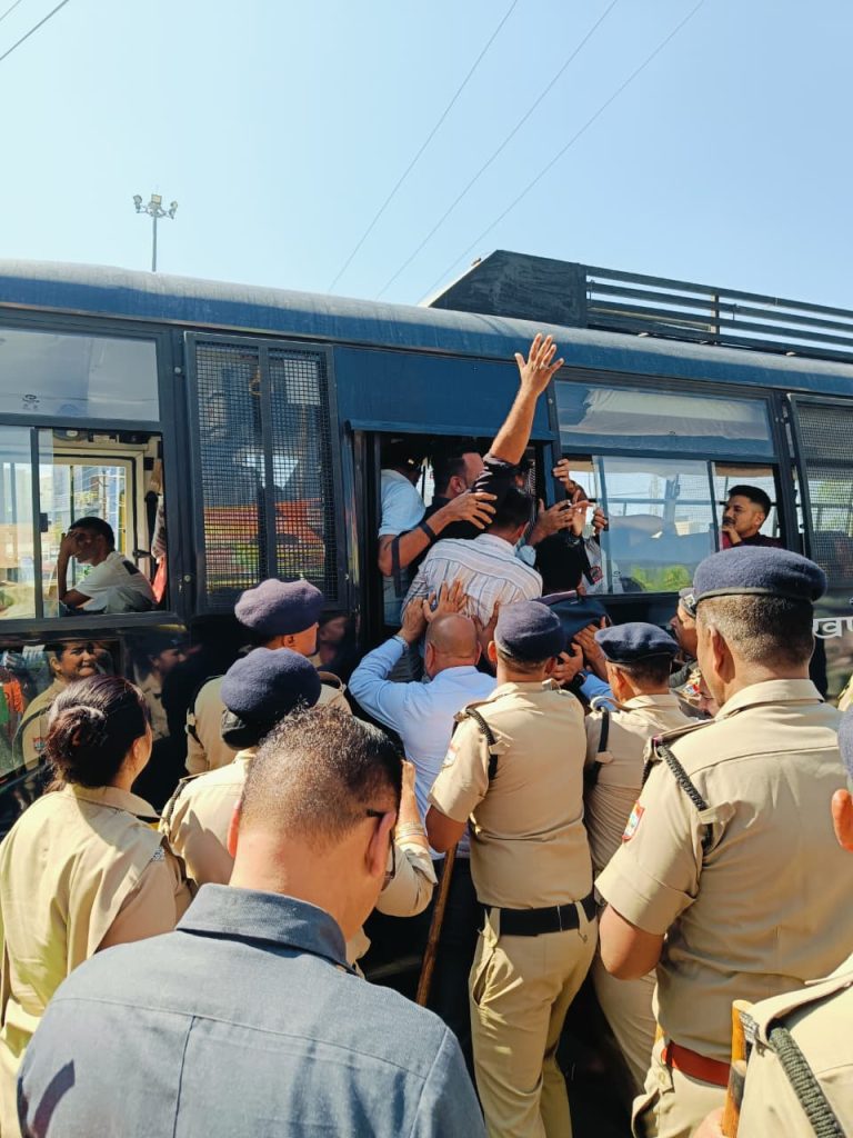 पूर्व MLA हेमेश खर्कवाल के नेतृत्व में कार्यकर्ताओं ने प्रतियोगी परीक्षाओं में पेपर लीक, वोट चोरी के आरोप लगाते हुए विराध किया। कहा कि प्रदेश में BJP राज में महिला उत्पीड़न, अपराध का ग्राफ लगातार बढ़ रहा है। युवक कांग्रेस जिलाध्यक्ष विनोद बड़ेला, चंपावत विधानसभा क्षेत्र के अध्यक्ष नीरज मिश्रा, पूर्व सभासद अमित भट्ट, संजय अग्रवाल आसिफ, राहुल राज, मयूर बिष्ट, एडवोकेट शाहबाज़ अंसारी, अमन रावत, खीम सिंह रावत, सतीश पांडेय, विश्वविद्यालय प्रतिनिधि अमित जोशी, छात्रसंघ के पूर्व कोषाध्यक्ष साहिल गिरी, हरीश शर्मा, विकास शर्मा, राज गंगवार, आदिल, योगेश गुप्ता, शहरोज आदि कार्यकर्ताओं को हिरासत में लिया गया।