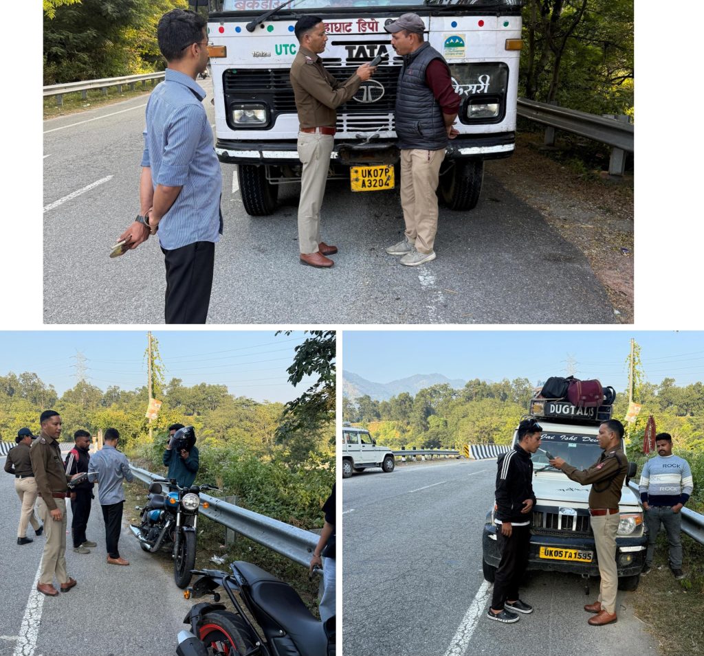 चंपावत जिले में परिवहन विभाग का सघन चेकिंग अभियान, कुल 98 वाहनों पर कार्रवाई, बिना हेलमेट वाहन चलाने पर 52 दुपहिया वाहनों का चालान