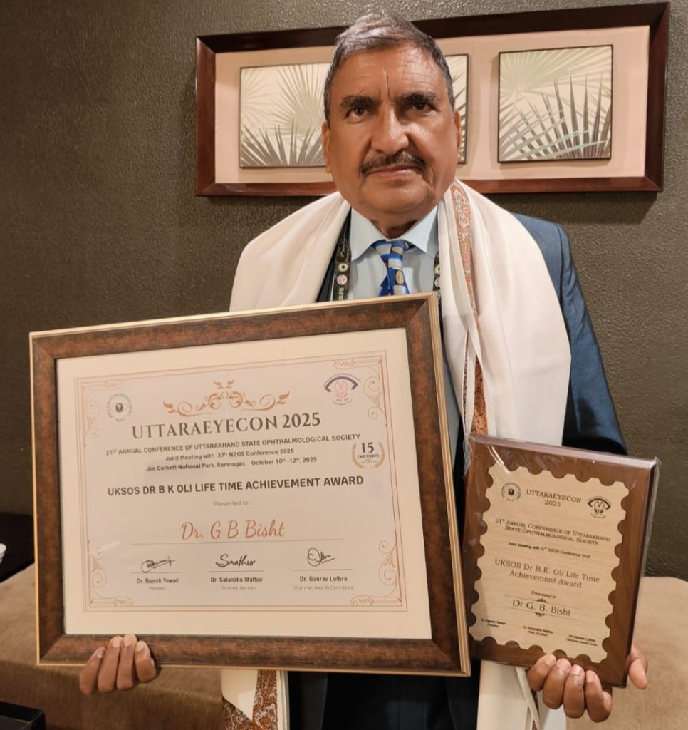 रामनगर में दिया गया Uttarakhand State Ophthalmological Society डॉ. बीके ओली Life Time Achievement Award