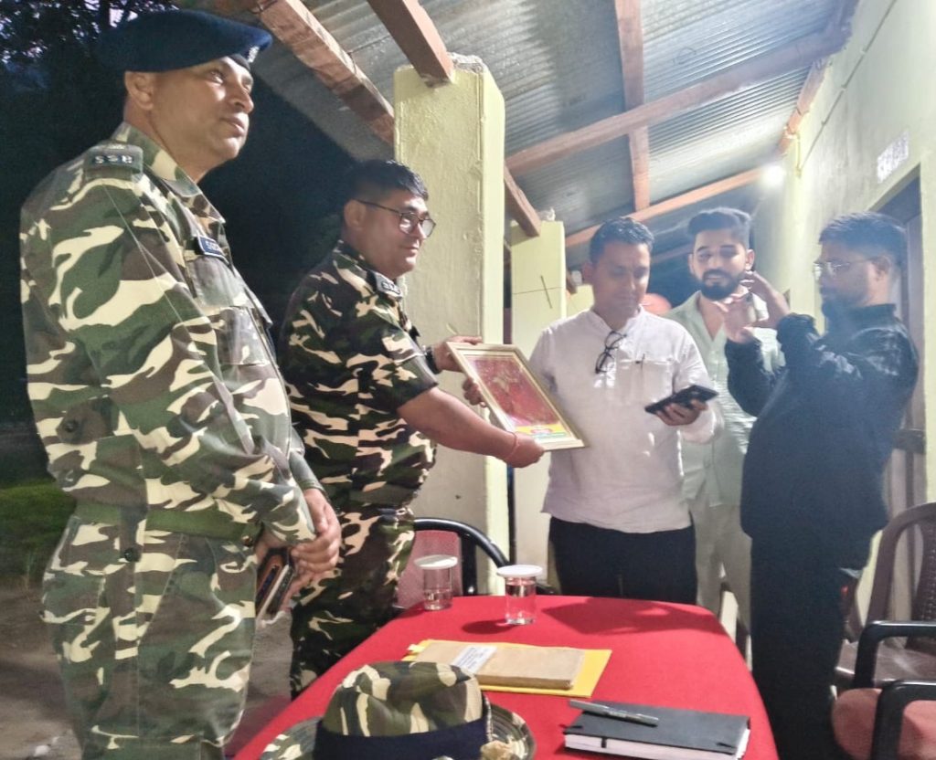 चंपावत/चूका। SSB (सशस्त्र सीमा बल) की चंपावत स्थित पंचम वाहिनी के कमांडेंट सुरेंद्र विक्रम ने नेपाल सीमा से लगे VIBRANT VILLAGE चूका का भ्रमण कर ग्रामीण क्षेत्र का जायजा लिया। उन्होंने चूका BOP (बॉर्डर आउट पोस्ट) की व्यवस्थाओं का निरीक्षण करने के साथ ही ग्रामीणों से विकास को लेकर चर्चा की। साथ ही किसी भी तरह की संदिग्ध गतिविधियों की जानकारी SSB को देने की अपील की।