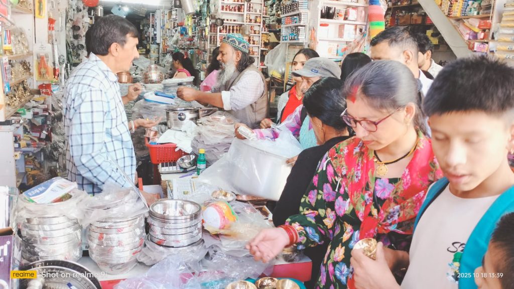 आज धनतेरस को 18 अक्टूबर की सुबह से ही बाजार में चहलपहल शुरू हुई। देर शाम तक लोग खरीदारी करते रहे।