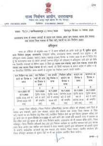 जारी कार्यक्रम के मुताबिक 13 नवंबर और 14 नवंबर को सुबह 10 बजे से शाम 5 बजे तक नाम निर्देशन पत्र जमा किए जा सकेंगे। 15 नवंबर को नामांकन पत्रों की जांच होगी। 16 नवंबर को नाम वापसी और चुनाव निशानों का आवंटन होगा। 20 नवंबर को सुबह 8 बजे से शाम 5 बजे तक मतदान होगा। मतगणना 22 नवंबर को सुबह 8 बजे से होगी। चंपावत जिले में 312 ग्राम पंचायतों में से महज 49 का ही अब तक गठन हो सका है।