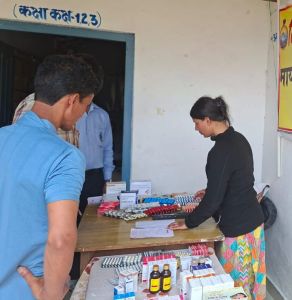 स्वास्थ्य शिविर में परीक्षण और दवाएं बांटी गई