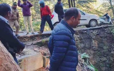 जानकारी के मुताबिक एनएच पर नर्सरी गधेरे के पास आज मंगलवार पूर्वान्ह 11:30 बजे चल्थी से रेत ला रहा एक डंपर गधेरे में गिर गया। जानकारी लगते ही पुलिस की टीम मौेक पर पहुंची। नेत्र सलान बाराकोट से लौट रहे डीएम मनीष कुमार ने दुर्घटना स्थल का मुआयना किया। साथ ही जाड़ों के मद्देनजर हादसों की रोकथाम को सभी जरूरी कदम उठाने की हिदायत दी। हादसे में नर्सरी गधेरे की पुलिया की रेलिंग के साथ ही वन विभाग का गेट भी टूट गया है। पुलिस मौके से फरार चालक का पता लगा रही है।