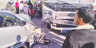 टनकपुर-पिथौरागढ़ राष्ट्रीय राजमार्ग पर चंपावत मादली में रोडवेज बस और विपरीत दिशा से आ रही कार में टक्कर