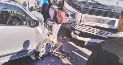 NH पर चंपावत के पास मादली में आज 9 दिसंबर के अपरान्ह करीब 2 बजे ऋषिकेश जा रही लोहाघाट डिपो की रोडवेज बस से विपरीत दिशा से आ रही एक कार में टक्कर लग गई। टक्कर लगने से दोनों वाहनों को खासा नुकसान हुआ है। दुर्घटना से कुछ देर के लिए यात्री सकते में आ गए। प्रत्यक्षदर्शियों के मुताबिक रोडवेज चालक की सूझबूझ से बड़ा हादसा होते-होते बचा। कार में सवार तीनों लोग पुलिस कर्मी बताए गए हैं। साथ ही उनके नशे में होने की बात सामने आ रही है। मौके पर पहुंच पुलिस जरूरी कार्रवाई कर रही है।