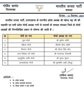 चंपावत BJP के जिलाध्यक्ष गोविंद सामंत ने जारी की सूची