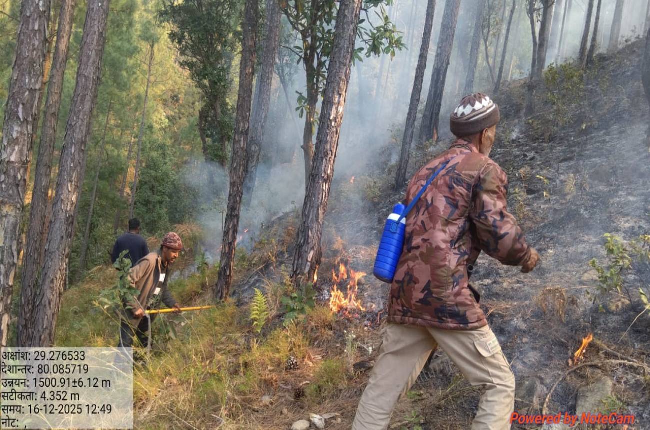 जानकारी के मुताबिक आज 16 दिसंबर की पूर्वान्ह चंपावत से करीब 10 किमी दूर बनलेख धौन के पास के जंगल के पास से धुआं उठता दिखा। NH से गुजर रहे चंपावत के पूर्व ब्लॉक प्रमुख बहादुर सिंह फर्त्याल ने तेजी से उठते धुएं की जानकारी दी। उप प्रभागीय वनाधिकारी सुनील कुमार ने बताया कि सूचना मिलने पर चंपावत रेंज से वन विभाग की टीम मौके पर पहुंची। भारी मशक्कत के बाद घंटों बाद आग पर काबू पाया जा सका। जिससे बड़ा नुकसान बच गया। इस क्षेत्र में चीड़, बांज सहित मिश्रित प्रजाति का जंगल है।
