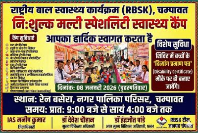 चंपावत में निःशुल्क मल्टी स्पेशलिटी स्वास्थ्य शिविर 8 जनवरी को