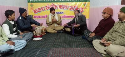 चंपावत। पौष मास के चौथे और अंतिम रविवार को आज 11 जनवरी को हुई कुमाऊंनी बैठकी होली में होल्यारों ने होली गायन के खूबसूरत रंग बिखेरे। कलश संगीत कला समिति के तत्वाधान में कलश संगीत कला समिति के अध्यक्ष हिमेश कलखुड़िया की अध्यक्षता में हुई कुमाऊंनी बैठकी होली का शुभारंभ दीप प्रज्वलित कर किया गया।