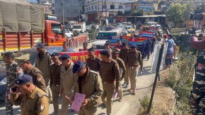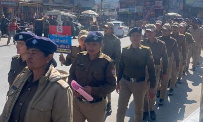 चंपावत में पुलिस ने सड़क सुरक्षा माह के तहत पैदल रोड मार्च निकाला