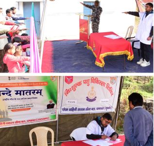वाइब्रेंट गांव पाशम के पशु चिकित्सा शिविर में डॉ. जितेंद्र खर्कवाल ने 17 मवेशियों का इलाज किया गया। SSB ने नि:शुल्क दवाइयां वितरित की। शिविर में पशुओं की सेहत जांच कर चिकित्सीय परामर्श दिया गया। स्वस्थ्य जीवनशैली, संतुलित आहार, स्वच्छता, मौसमी बीमारियों से बचाव एवं पशुधन प्रबंधन की जानकारी दी। शिविर से लाभांवित ग्रामीणों ने इस पहल के लिए SSB का आभार जताया। कार्यक्रम के दौरान SSB के कर्मी व ग्रामीण मौजूद थे।