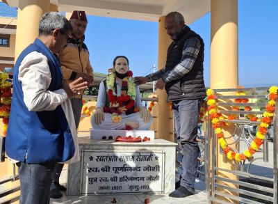 टनकपुर में तिरंगा फहराने के बाद सेनानी पंडित पूर्णानंद जोशी की प्रतिमा में मंडी समिति के पूर्व सभापति हरीश भट्ट, सेनानी पुत्र मोहन जोशी आदि ने माल्यार्पण किया।