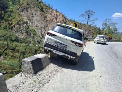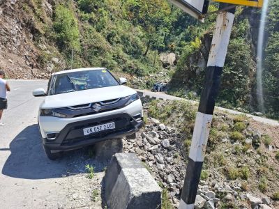 पिथौरागढ़ निवासी गिरधर सिंह आज 15 अप्रैल को अपनी पत्नी और चाची के साथ कार (UK05 E 2460) से हल्द्वानी से पिथौरागढ़ जा रहे थे। NH पर टनकपुर से 61 किमी दूर धौन के पास एकाएक कार असंतुलित हुई और दो पैराफिटों से टकराने के बाद तीसरे के ऊपर कार फिट हो गई। गनीमत यह रही कि कार पैराफिट में फिट हो गई। बाई तरफ करीब 150 फीट गहरी खाई थी। जिस जगह हादसा हुआ, वहां सड़क ठीक थी और पर्याप्त चौड़ी। हादसे से ऐन पहले कार में सवार एक महिला को उल्टी हुई। संभवत: इसी दौरा कार का संतुलन बिगड़ा और यह हादसा हुआ। बाद में क्रेन के जरिए कार को हटाया गया।