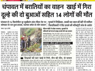 दुर्घटना में बारात से लौट रहे कुछ बारातियों के अलावा यात्रियों सहित कुल 14 लोगों की मौत हुई थी