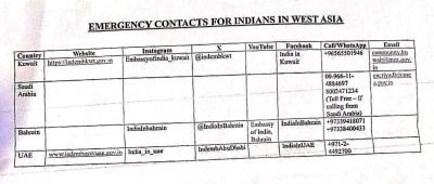 ईरान सहित पश्चिम एशिया के देशों में फंसे भारतीय नागरिकों की मदद के लिए अपील जारी की