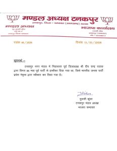 2019 से 2022 तक BJP के चंपावत जिलाध्यक्ष रहे दीप चंद्र पाठक ने 2025 में अगस्त के पहले सप्ताह BJP की सदस्यता से त्यागपत्र दिया था। जिला पंचायत अध्यक्ष पद के लिए पार्टी के अधिकृत किए गए प्रत्याशी से नाइत्तफाकी जताते हुए उन्होंने ये त्यागपत्र दिया था। अब 7 माह बाद उनका त्यागपत्र पार्टी नेतृत्व ने स्वीकार कर लिया है। आज 13 मार्च को इस आशय की जानकारी BJP की टनकपुर मंडल अध्यक्ष ने एक पत्र के जरिए दी। दीप चंद्र पाठक पार्टी के तेज-तर्रार नेता होने के अलावा बेबाकी से अपनी बात कहने के लिए जाने जाते थे।