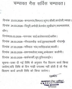 चंपावत गैस सर्विस ने जारी किया रसोई गैस सिलिंडर का रोस्टर