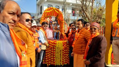 चेयरमैन गोविंद वर्मा ने हथरंगिया चौराहे पर शिव पार्वती की झांकी का शुभारंभ किया। झांकी नगर के मुख्य मार्गों से होते हुए ऋषेश्वर महादेव मंदिर ले जाई गई। झांकी को लेकर सुबह से ही लोगों में खासा उत्साह था। लोगों ने अपने घरों के बरामदों और छतों में खड़े होकर पुष्प वर्ष की। मोटर स्टेशन में सड़क के दोनों किनारों पर कतार बना कर खड़े श्रद्धालुओं नेे झांकी के दर्शन किए। पिथौरागढ़ से पहुंचे छोलिया दल आकर्षण का केंद्र रहे। झांकी को देखने के लिए ऋषेश्वर मंदिर में भारी संख्या में भक्तों का तांता लग गया। झांकी में शिव रूप में गौरव जोशी और पार्वती के रूप में काव्या सजी हुई थीं।