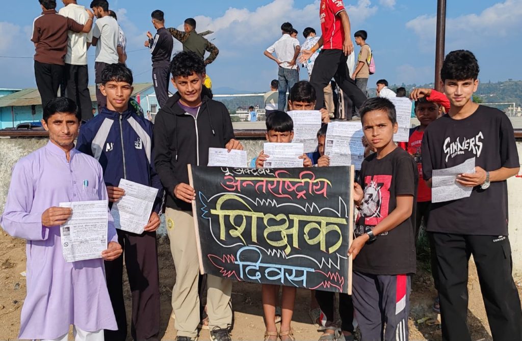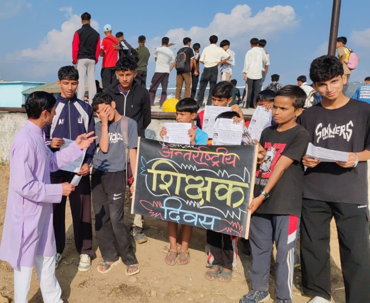 चंपावत। विश्व शिक्षक दिवस पर आज 5 अक्टूबर को गोरलचौड़ मैदान में नशा हटाओ जीवन बचाओ अभियान के संयोजक व सिप्टी के प्रवक्ता सामश्रवा आर्य ने ‘ज्ञान, संस्कार एवं मार्गदर्शन के संवाहक शिक्षक’ विषय पर बाल जागरूकता की। बताया कि हर साल पांच अक्टूबर को विश्व शिक्षक दिवस मनाया जाता है। जिसकी शुरुआत UNESCO ने वर्ष 1994 से की थी। जिसका उद्देश्य शिक्षकों के योगदान को सम्मान देना और शिक्षा के क्षेत्र में उनकी भूमिका को याद रखना है। कहा कि शिक्षकों का सही मार्गदर्शन ही हमें चोरी, नशाखोरी, अपराध, हिंसा, व्यभिचार, दुराचार सहित तमाम बुराइयों से बचाकर उज्ज्वल भविष्य तय करेगा। बाद में हस्ताक्षर अभियान भी चलाया गया। जिला क्रीड़ा अधिकारी चंदन सिंह बिष्ट के नेतृत्व में चलाए गए अभियान में मनोज सिंह, संदीप महर, पीयूष सिंह, नीरज, यश कुमार, हिमांशु, आशीष, चंद्रा और सूरज आदि बच्चे शामिल थे।